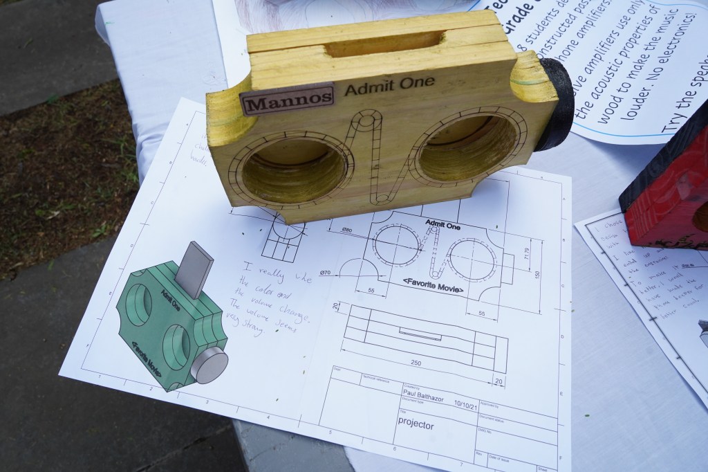 This is a Grade 8 Design unit where students create a “passive wooden speaker” for their cell phones. They are introduced to many new tools and processes. This includes Computer Aided Design (CAD), using more advanced power tools such as the drill press, Dremel tools, chisels, belt sanders, and Hole saws. They are also introduced to surface finishing for wood: staining and lacquer.
